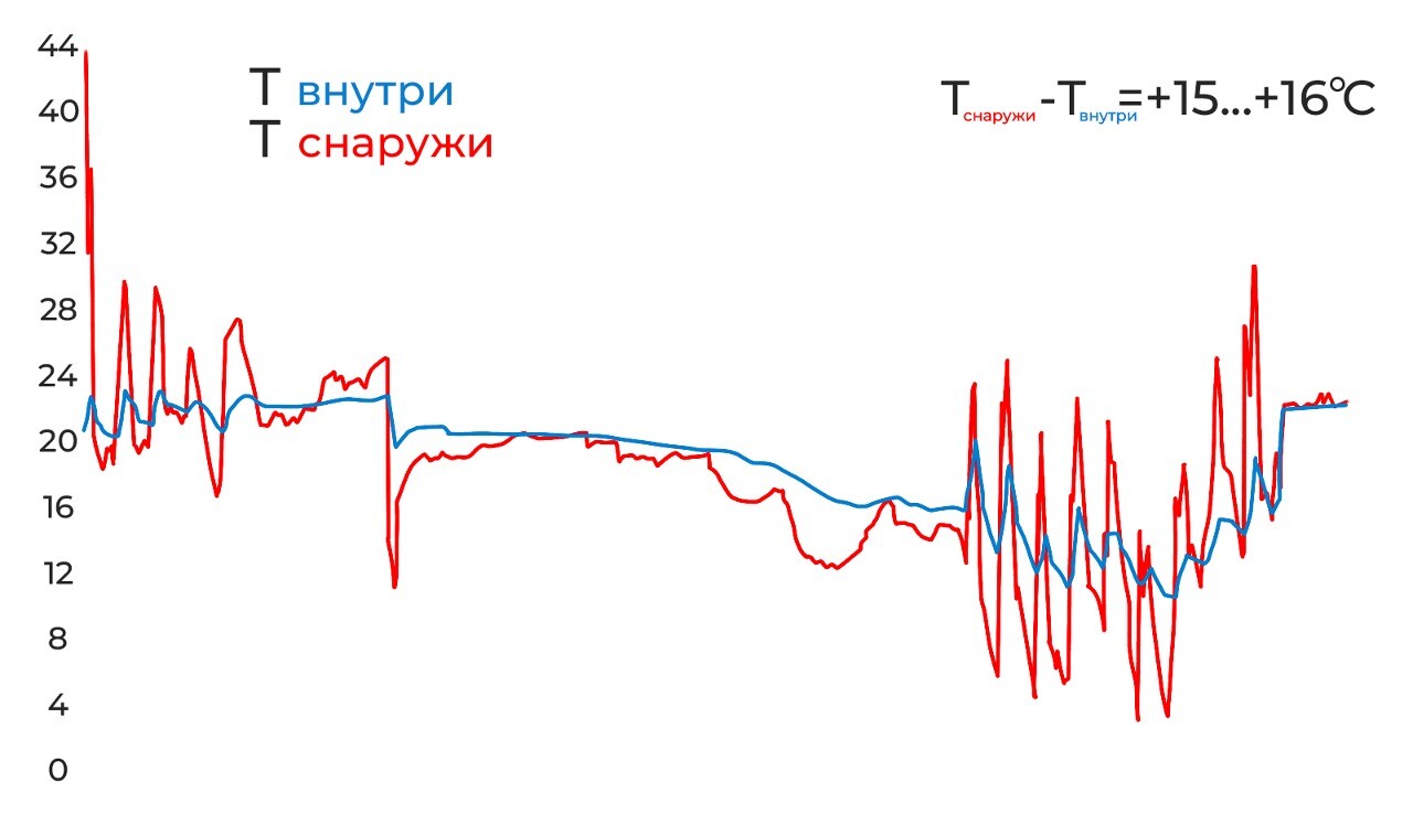 Температура внутри и снаружи контейнера при использовании вкладыша