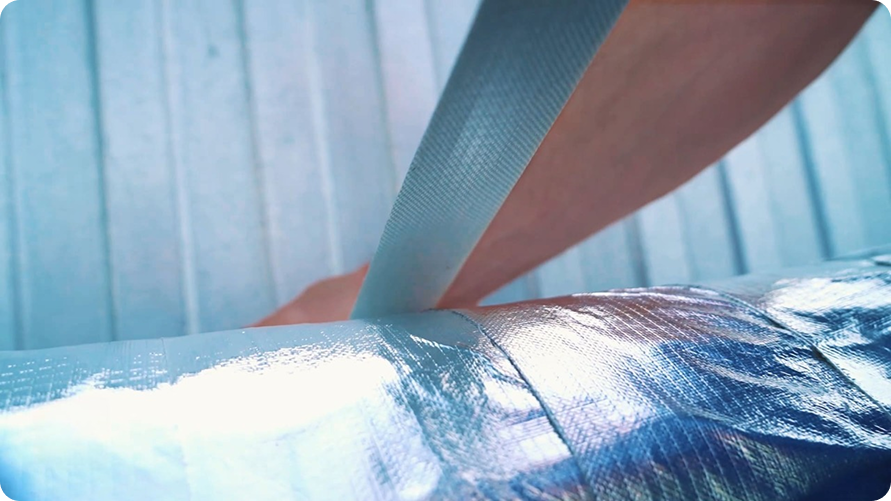 В отличие от обычного алюминиевого скотча, наша лента армирована стеклотканью, что придает ей высокую прочность на разрыв и устойчивость к механическим повреждениям.